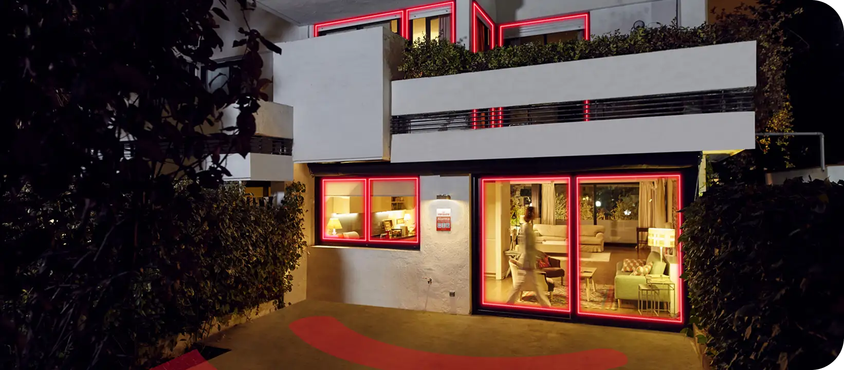 Nuestros detectores perimetrales alertan al identificar cualquier tipo de movimiento no autorizado en zonas exteriores. Además, protegemos con sensores de acceso todas las puertas y ventanas vulnerables para reforzar la seguridad ante intentos de robo u ocupación, y puedes decidir instalar también cámaras de videovigilancia para exteriores.